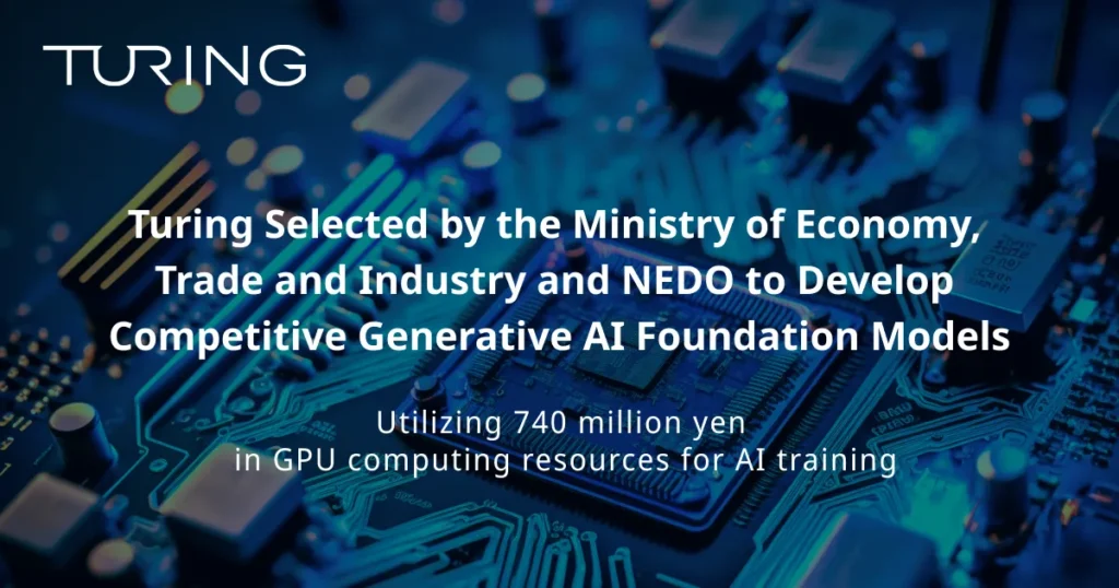 Turing Selected by the Ministry of Economy, Trade and Industry and NEDO to Develop Competitive Generative AI Foundation ModelsUtilizing 740 million yen in GPU computing resources for AI training