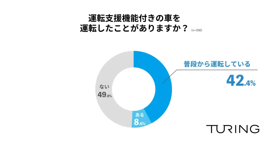 - 約半数が運転支援機能付きの車を運転した経験あり